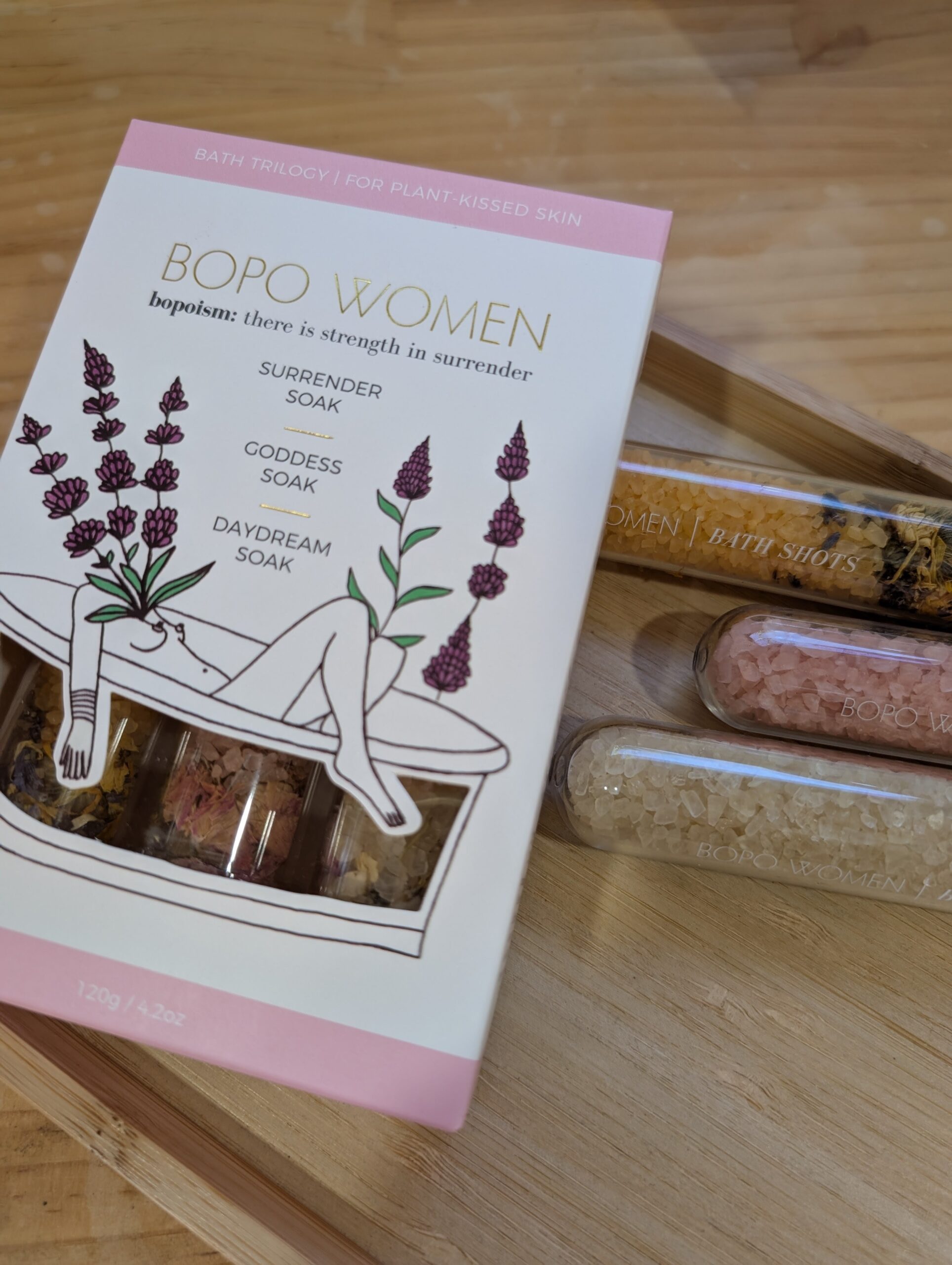 A beautiful trio of Bopo Bath Shots. Each bath shot features a 100% pure blend of essential oils, mineral rich salts, fruit extracts, clays & organic flowers.