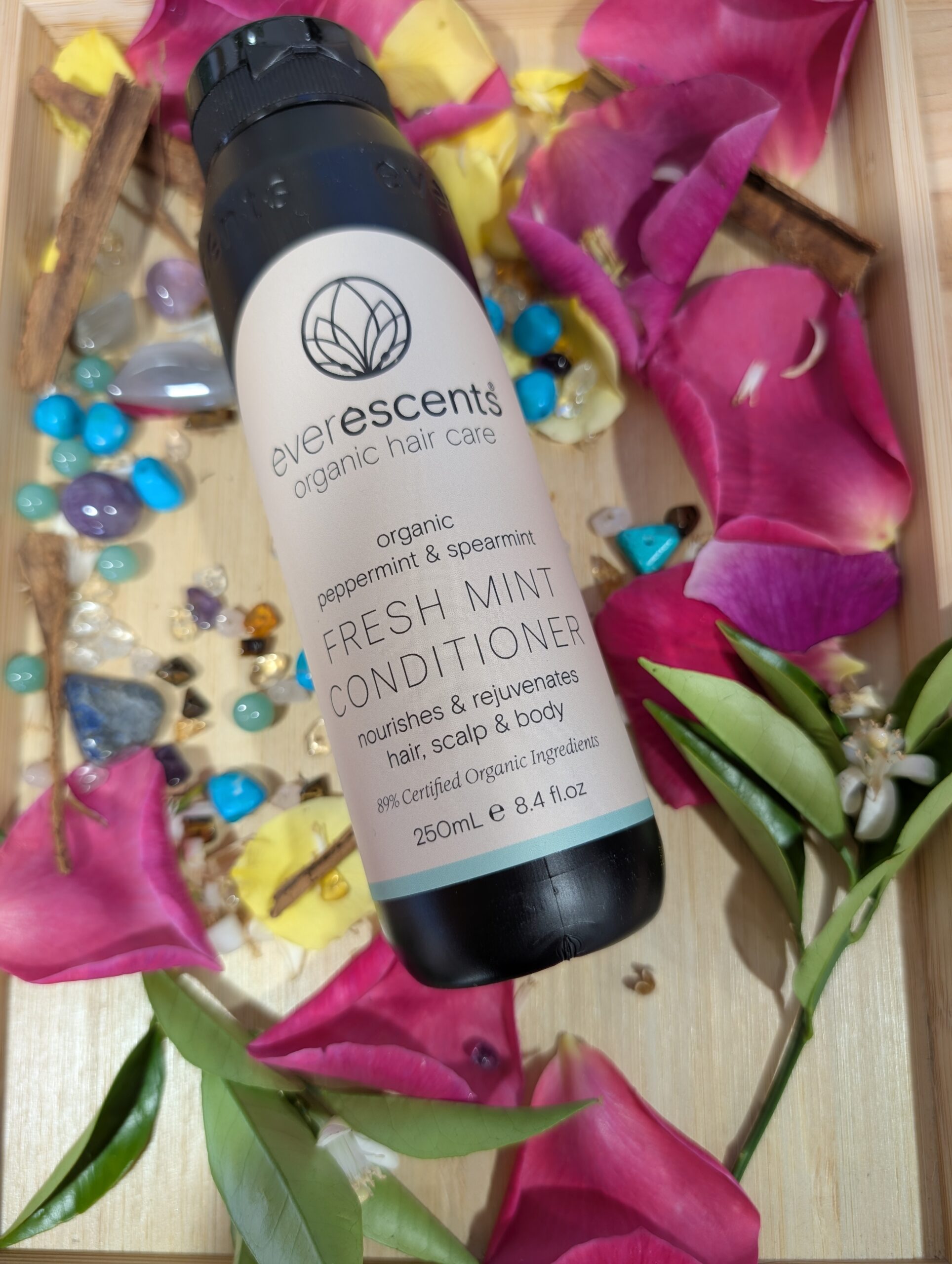 Includes the EverEscents signature blend of Organic Essential Oils and extracts; peppermint, spearmint, rosemary, sage, horsetail, nettle, vitamins E and B5.