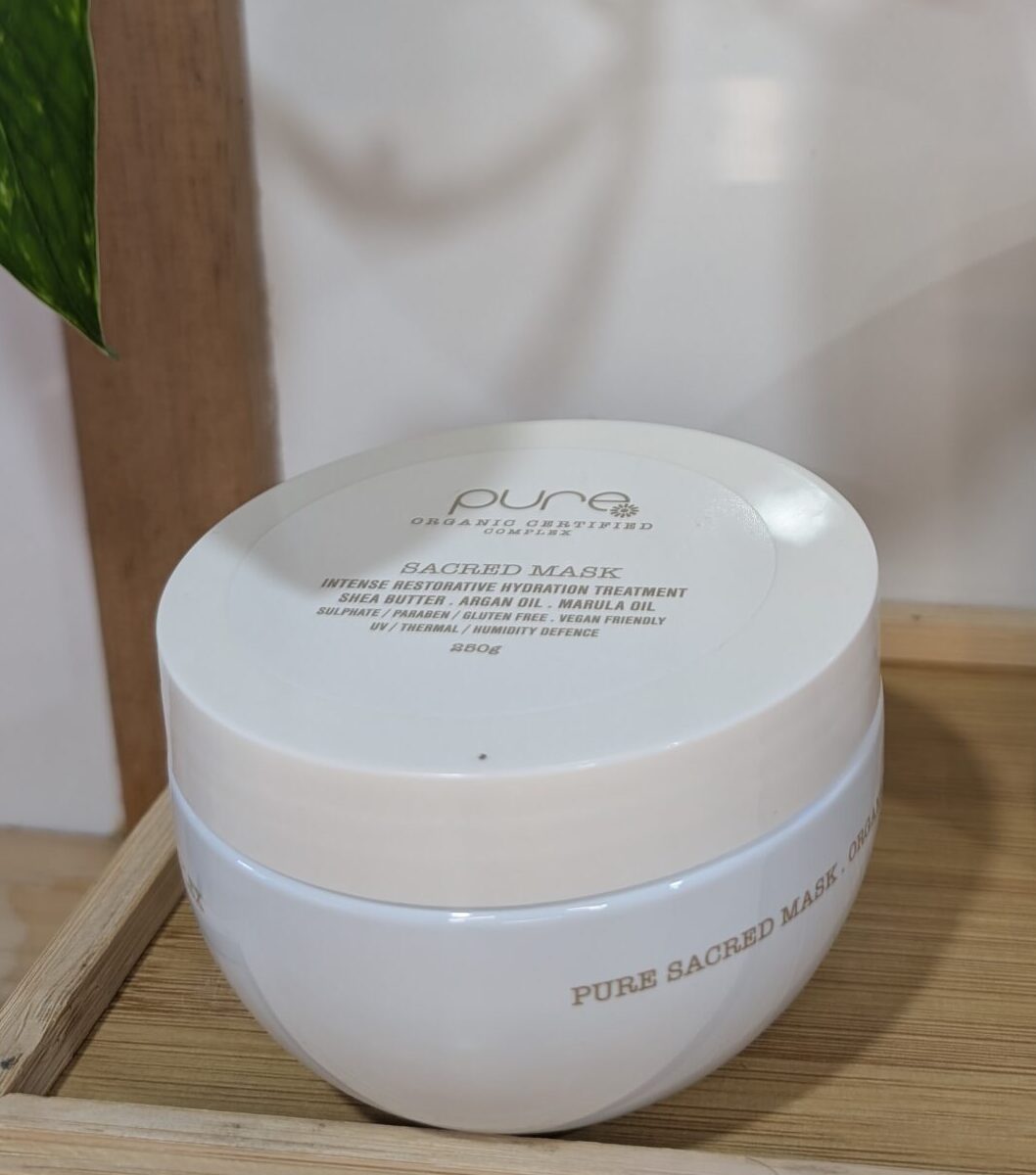 Pure Sacred Mask with miracle healing powers of Argan Oil and Shea Butter. Combined with Pure’s Organic Certified Complex™ to help repair, soften and shine all types of fragile, lifeless hair.