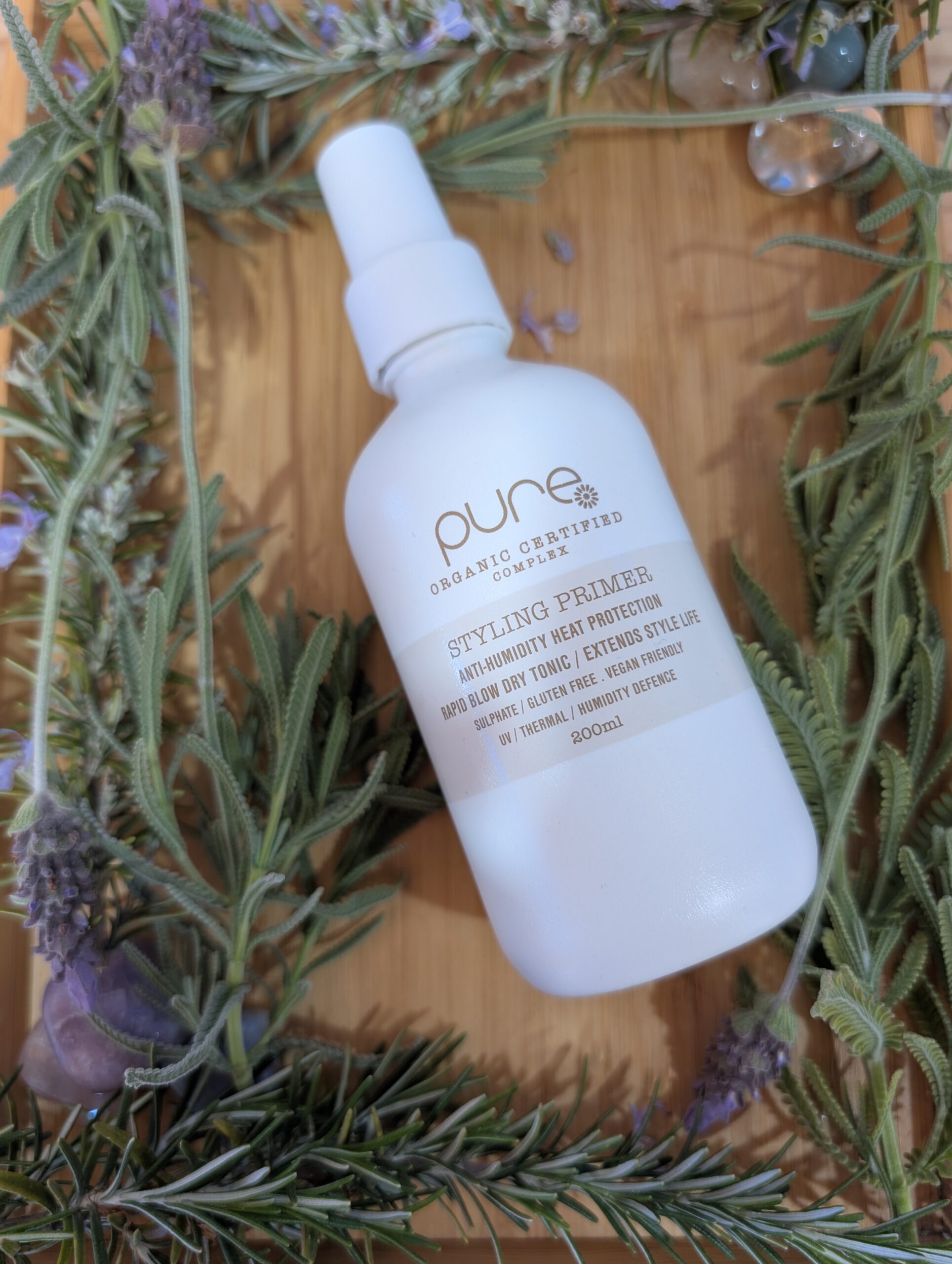 Pure Styling Primer is a protective base coat for prepping hair before styling to provide lasting volume and fullness through the use of Pure’s Organic Certified Complex™.