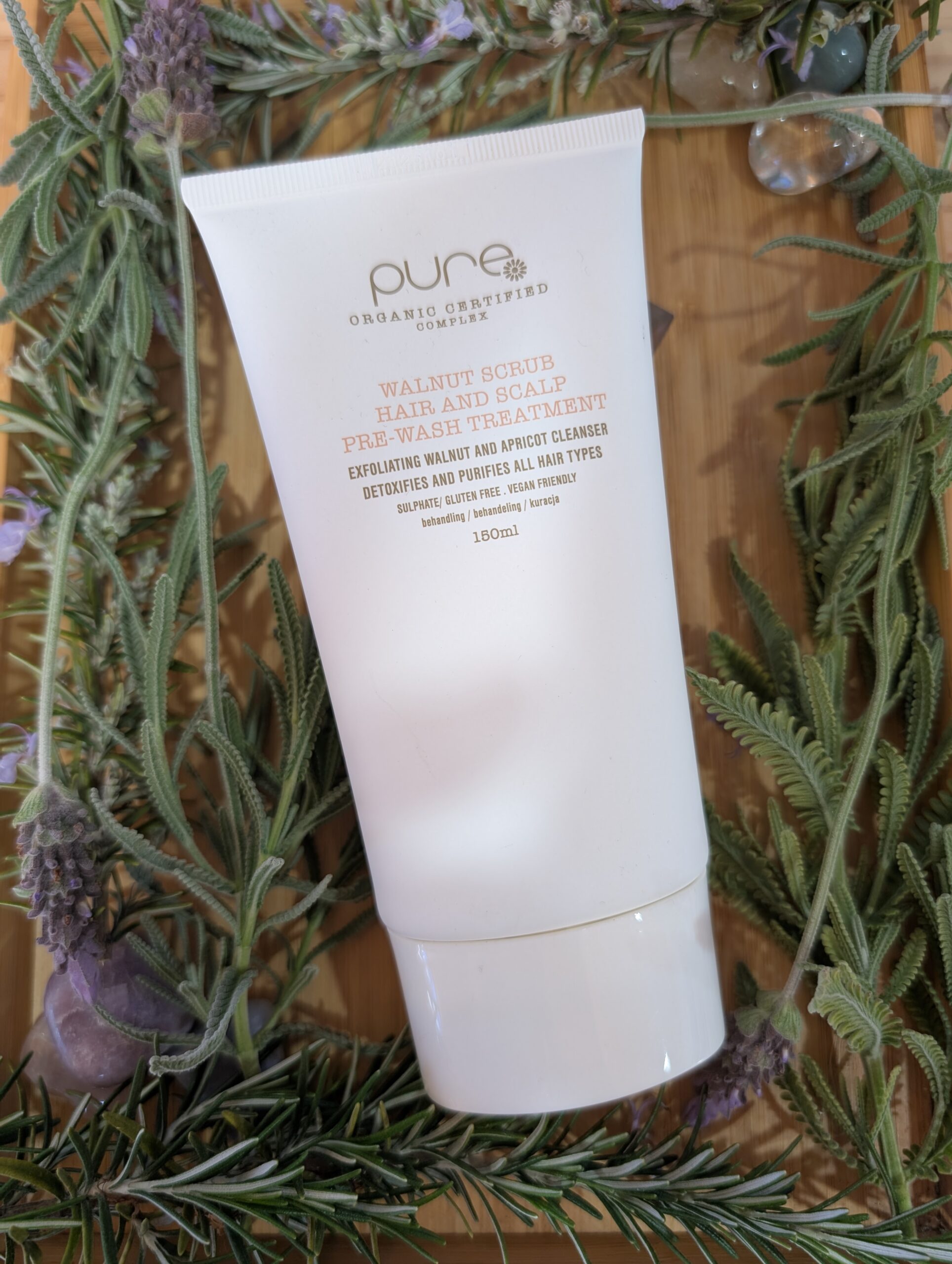 Pure Walnut Scalp Scrub is a gentle exfoliation treatment prewash to use before shampooing for an intense hair and scalp detox.